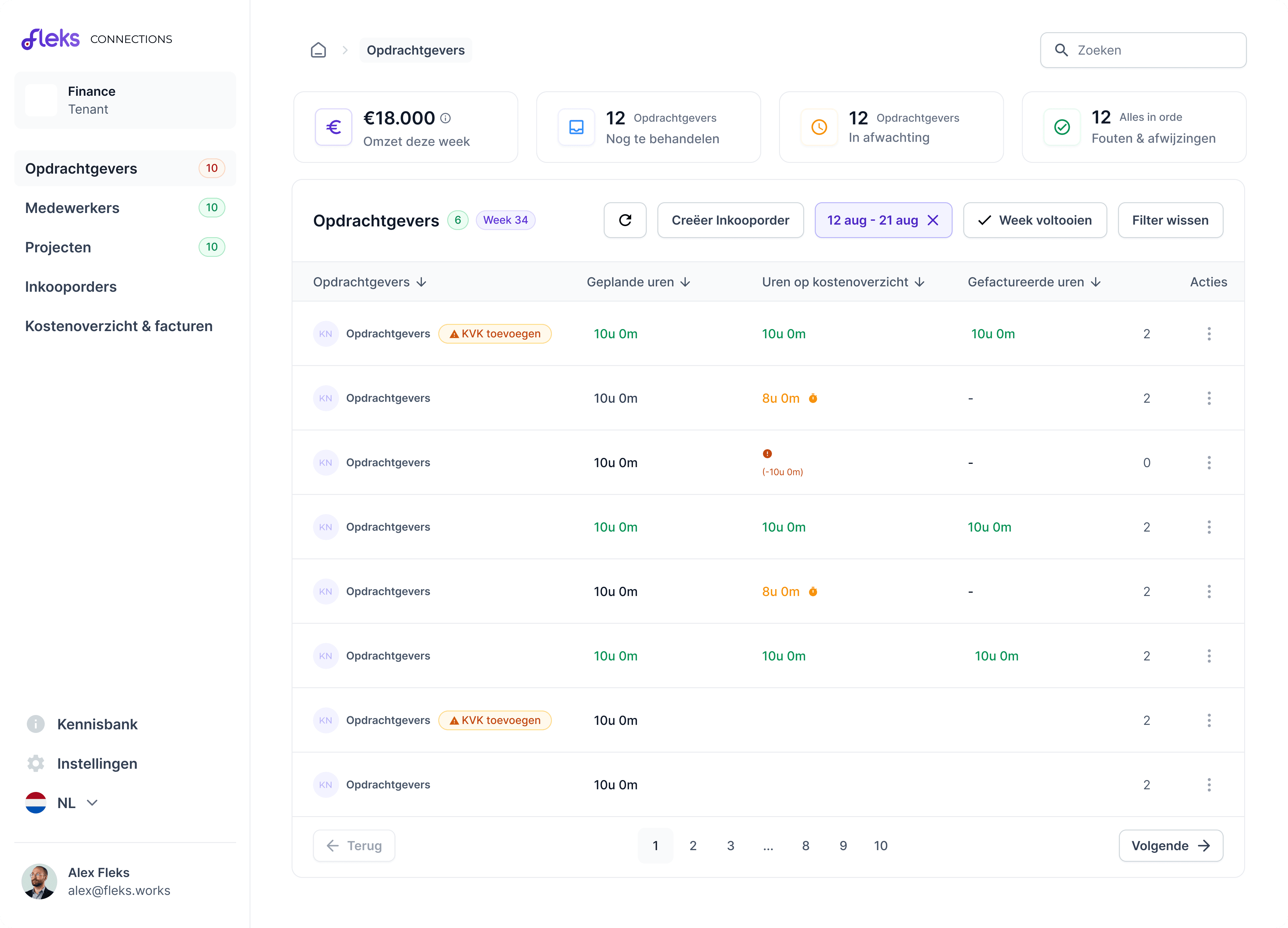 Met Fleks Finance regel je alles rondom verloning en facturatie op basis van je planning en urenregistratie. Je ziet direct wat verwerkt is, wat nog openstaat en waar actie nodig is. Zo houd je controle en werk je zonder fouten.