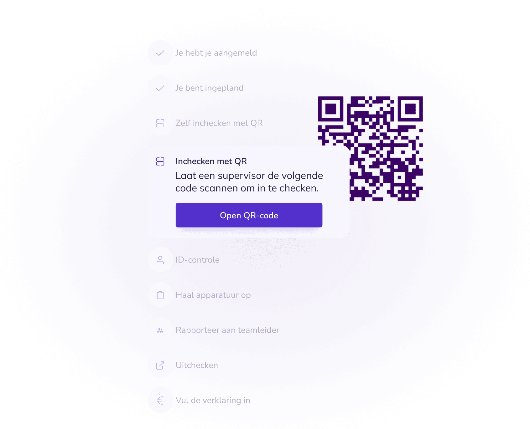 Zie of je medewerkers zich op de afgesproken tijd en plek bevinden met onze in- en uitcheck functionaliteit. Zo kun je tijdig schakelen!