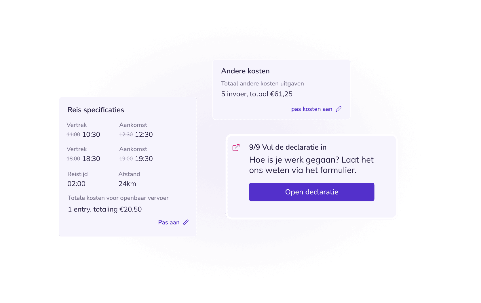 Dien eenvoudig declaraties in, inclusief foto. Ook kun je reiskosten berekenen en correcties aanvragen. Weg met de losse bonnetjes!